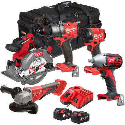 Milwaukee M18FPP5T-502B 18V 5 Piece Tool Kit with 2 x 5.0Ah Battery & Charger